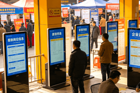 灵工智核智慧终端深耕劳务市场与校园招聘场景,面向求职者提供一站式线下智能求职服务,支持 AI 语音交互找工作、全量岗位查询、最新就业政策展示、在线一键报名,打通线下求职最后一公里。